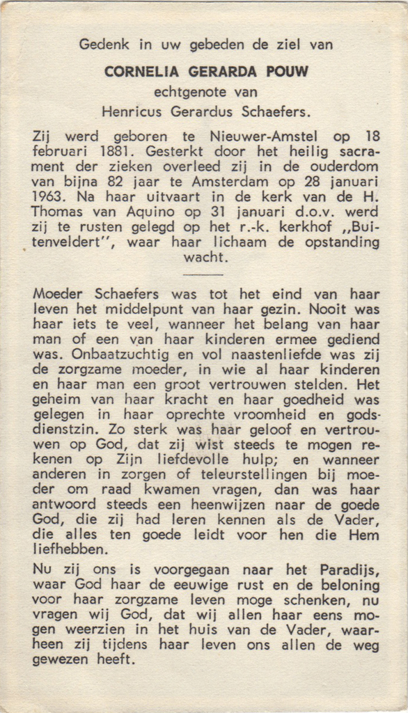 Bidprentje Cornelia Gerarda Pouw