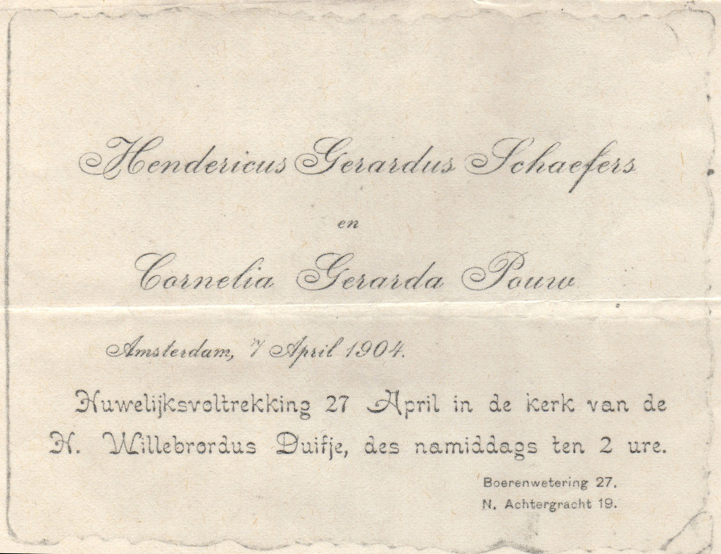 x 28-04-1904 Amsterdam met POUW, Cornelia Gerarda.        POUW, Cornelia Gerarda dochter van Reinier Pouw en Gerarda Spruit.